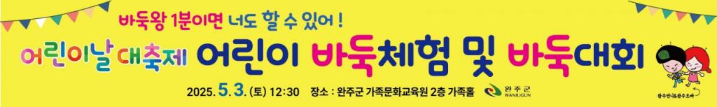 전북 완주군은 내달 3일 완주군 가족문화교육원 가족홀에서 '어린이 바둑 체험·바둑대회'가 열린다고 29일 밝혔다.