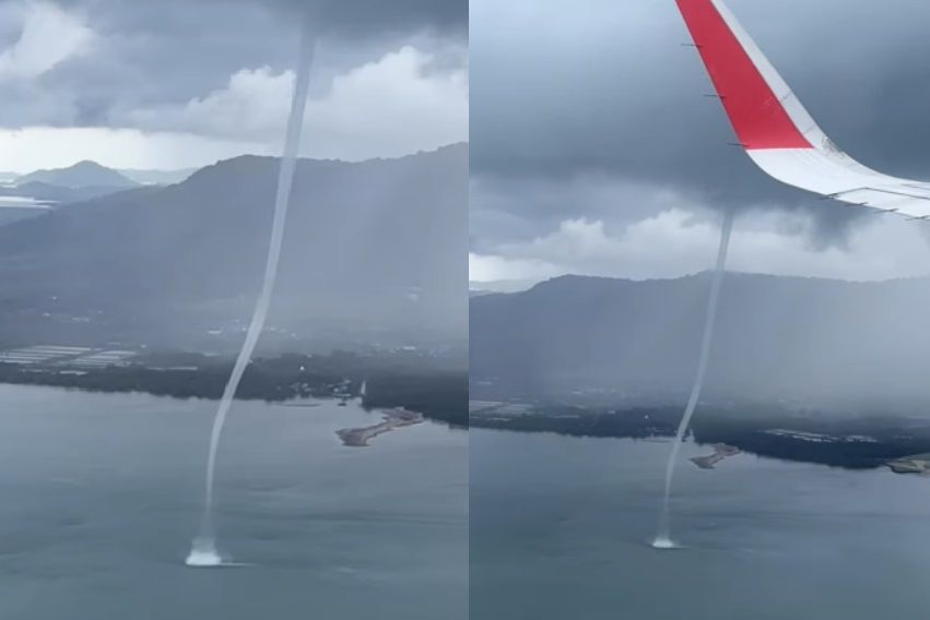 지난 25일(현지시간) 태국 푸껫 공항 인근 해상에서 포착된 용오름 현상. 사회관계망서비스(SNS) 영상 캡처