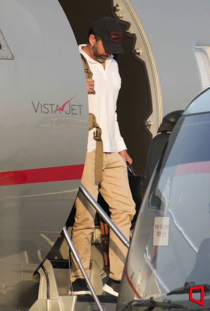 도널드 트럼프 미국 대통령의 장남 트럼프 주니어가 29일 서울 강서구 김포비즈니스항공센터를 통해 입국하고 있다. 정용진 신세계그룹 회장의 초청으로 한국을 찾는 트럼프 주니어는 국내 주요 대기업 총수와 개별 면담을 가질 예정이다.