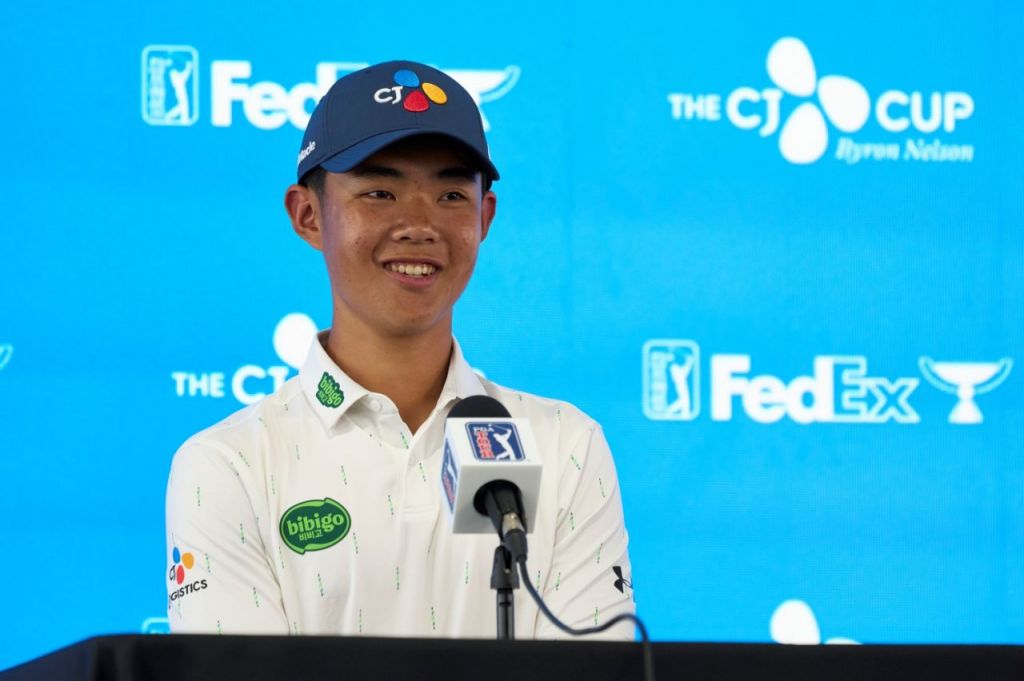 크리스 김이 더 CJ컵 바이런 넬슨 기자회견에서 미소를 짓고 있다. CJ그룹