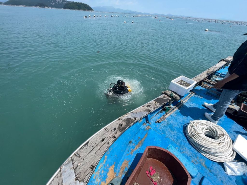 전남 완도 정도리 인근 해상에 해삼을 방류하고 있는 모습. 전남도 제공