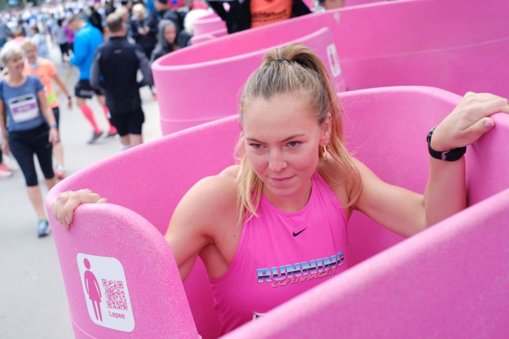 2019년 10월 덴마크 코펜하겐에서 열린 하프 마라톤 대회에서 한 여성이 라피 제품을 사용하고 있다. 라피 홈페이지