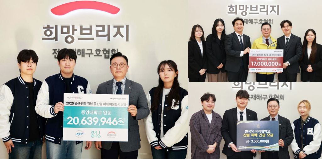 신훈 희망브리지 사무총장은 "바쁜 학업 중에도 피해 이웃을 위해 따뜻한 마음을 보내준 대학생 여러분께 깊이 감사드린다"며 "기부금은 산불 피해 지역 주민들의 일상 회복과 복구 지원에 소중히 사용될 예정"이라고 밝혔다.