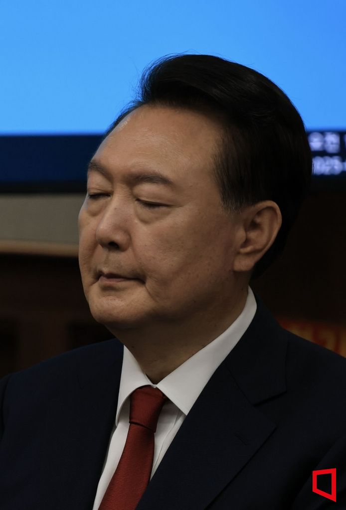 윤석열 전 대통령이 21일 서초동 서울중앙지법에서 열린 내란 우두머리 혐의에 대한 두 번째 정식 재판에 출석하고 있다. 2025.4.21 사진공동취재단