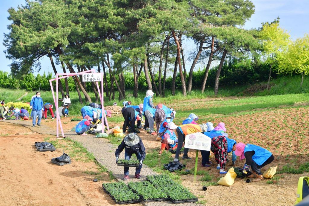 장성군 동화면민들이 축제 준비를 위해 버베나를 심고 있다. 장성군 제공