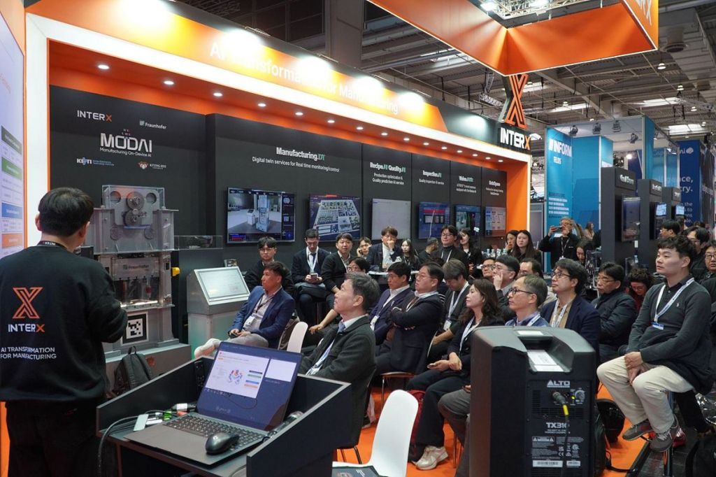 ㈜인터엑스는 제조 특화 생성형 인공지능(AI) 솔루션과 하드웨어 결합형 자율제조 솔루션을 소개하고, 독일 프라운호퍼 연구소와 글로벌 제조 기술에 대한 심도 있는 토론을 진행하며 관련 기업과 관람객들의 관심을 이끌었다.
