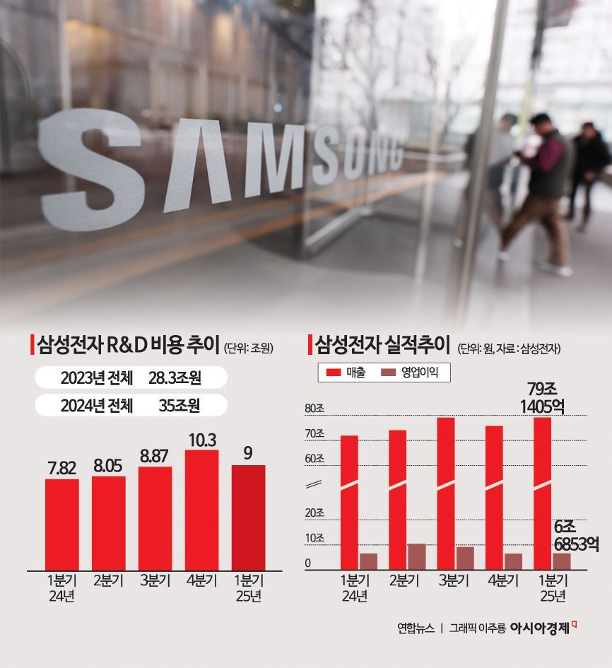 삼성전자는 어려운 대외 여건 속에서도 연구개발(R&D)에는 속도를 늦추지 않고 있다. 2025년 1분기에만 R&D에 투입한 금액은 9조원으로, 분기 기준 역대 최대 수준이다. 지난해 4분기(10조3000억원)를 제외하면 통상 7~8조원대였던 투자 수준을 넘어선 수치다. 연간 R&D 투자액이 또 한 번 사상 최대치를 경신할 가능성도 커졌다. 삼성전자의 R&D 투자액은 최근 8년 연속 증가했고, 2023년 28조3000억원, 2024년 35조원을 기록한 바 있다. 올해는 전초기지 역할을 할 R&D 거점도 확대된다. 지난 1월 경기도 용인 기흥캠퍼스에 완공된 차세대 반도체 R&D 단지는 본격 가동에 들어갔으며, 업계에선 삼성전자가 세계적인 반도체 장비 기업 ASML과 공동 연구를 위한 극자외선(EUV) 장비 개발센터 유치를 추진할 것으로 예상한다.