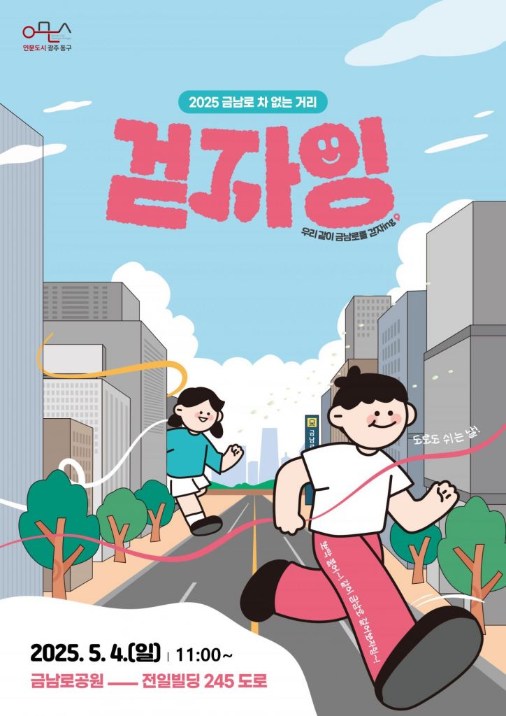 광주 동구는 다음 달 4일 전일빌딩 245에서 금남로 공원까지 5차로 도로를 '차 없는 거리'로 운영한다고 30일 밝혔다.