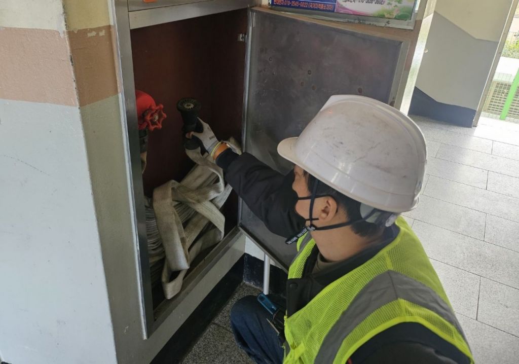 부산도시공사 관계자가 소방시설을 점검하고 있다.