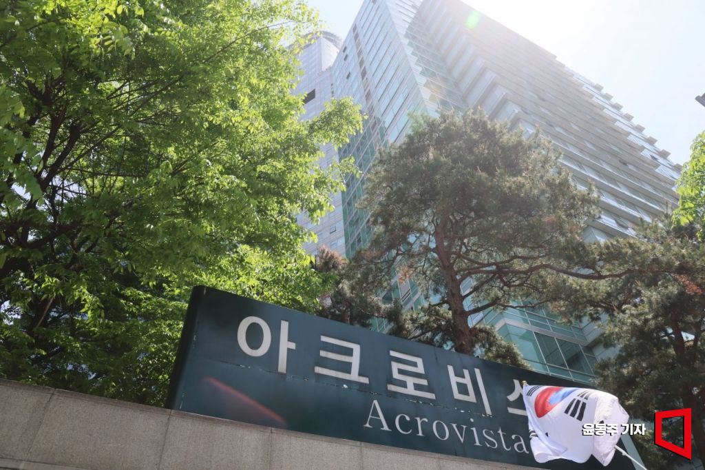30일 윤석열 전 대통령 부부와 건진법사 전성배씨 사이에 공천 개입, 뇌물수수 의혹 등에 대해 수사중인 검찰이 전격적으로 윤 전 대통령 사저에 대해 압수수색에 들어갔다. 사진은 아크로비스타 입구 모습.