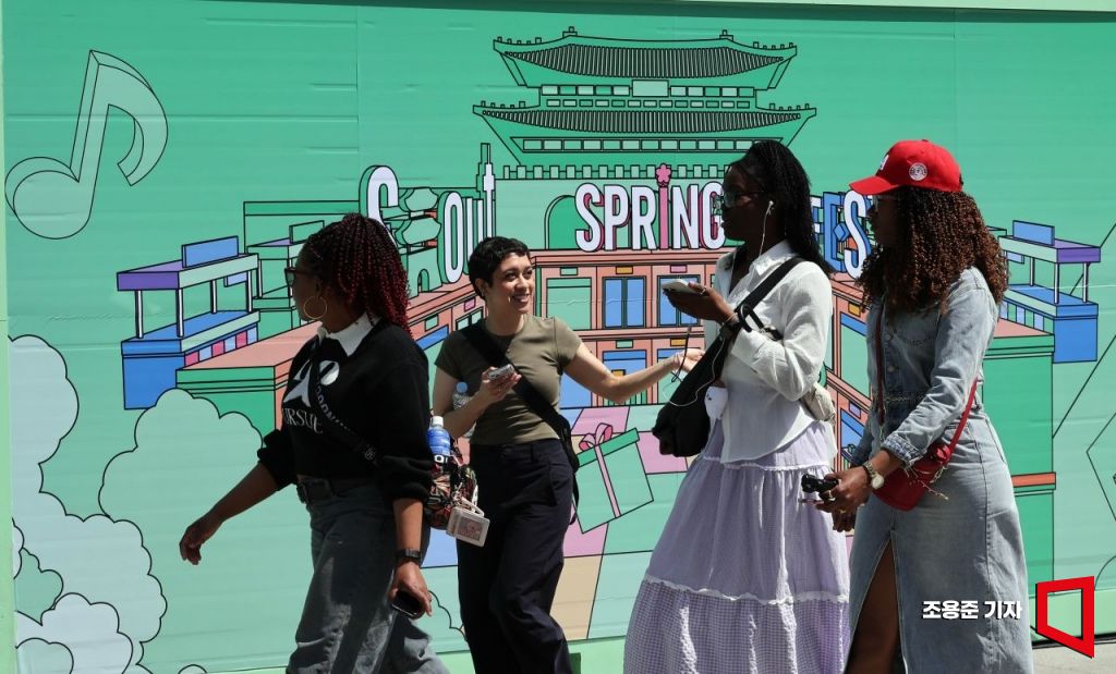 30일 광화문 광장에서 서울스프링페스타를 알리는 부스앞을 관광객들이 지나가고 있다. 서울스프링페스타는 이날부터 5월 6일까지 서울광장, 광화문광장, 덕수궁길, 월드컵경기장 등 서울 전역에서 열리는 서울의 대표적인 문화 관광 축제다.