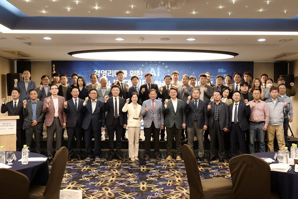 AI와 빅데이터 활용전략 세미나에 참석한 상의 회원사 및 관내 기업 임직원이 기념 촬영을 하고 있다. 목포상공회의소 제공