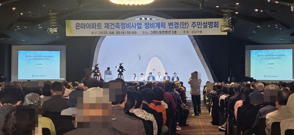 30일 서울 강남구 그랜드힐컨벤션에서 '은마아파트 재건축 정비계획 변경(안)' 주민설명회가 열렸다. 이지은 기자