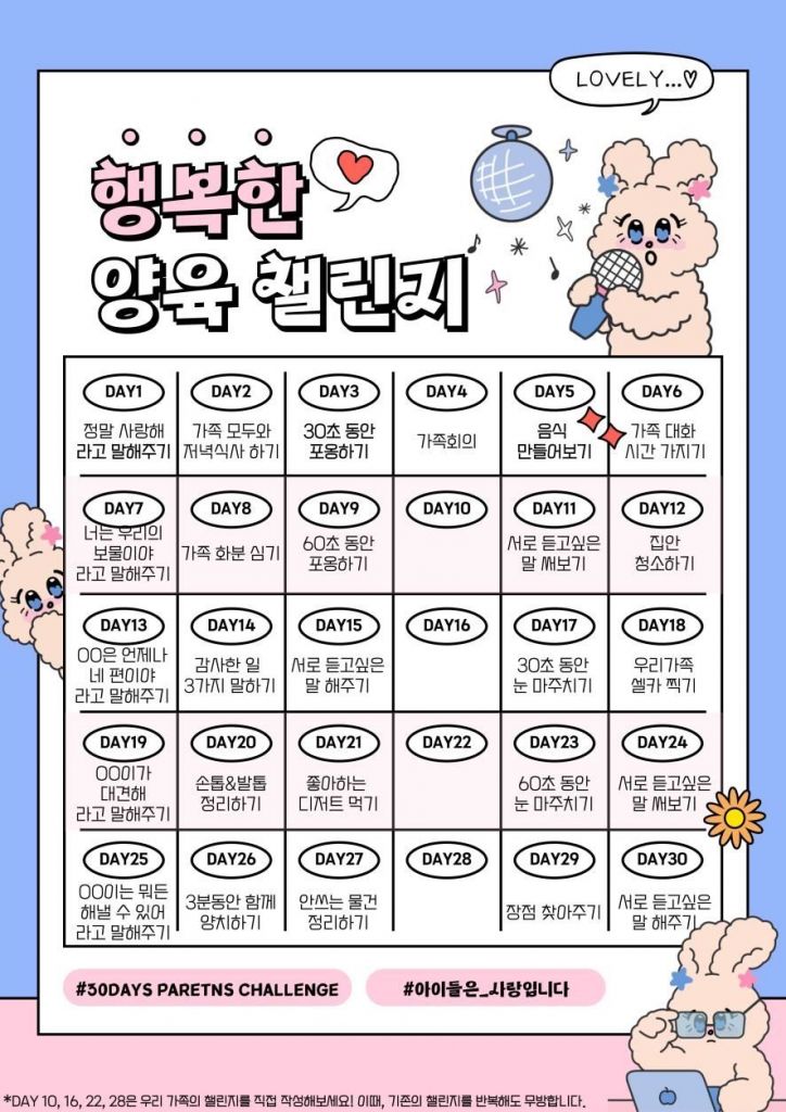 경기도가 마련한 긍정양육 챌린저 표