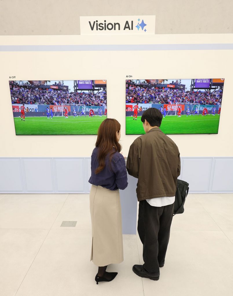 삼성전자가 지난달 7일 서초구 삼성 강남에서 연 신제품 출시 행사 '언박스&디스커버 2025'에서 관람객들이 AI TV 제품을 둘러보고 있다. 연합뉴스