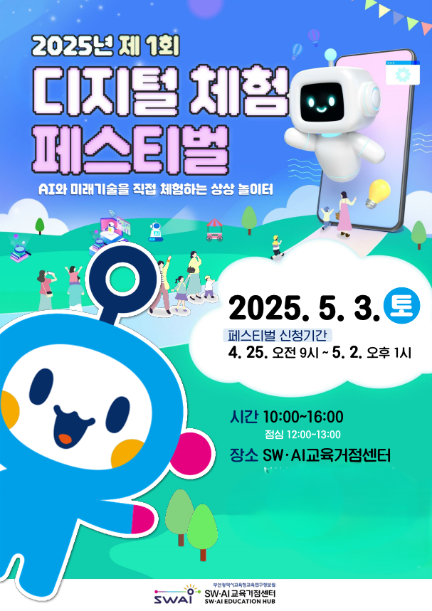 부산시교육청 교육연구정보원(원장 이성환)은 오는 3일 오전 10시부터 오후 4시까지 부산 SW·AI 교육거점센터에서 시민 660명을 대상으로 '2025년 스와이(SWAI) 디지털 체험 페스티벌'을 개최한다.