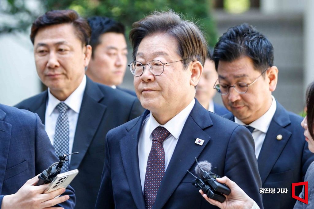 대장동 배임 및 성남FC 뇌물 혐의를 받고 있는 이재명 더불어민주당 대선 후보가 29일 서울 서초구 서울중앙지방법원에서 열린 공판에 출석하고 있다. 2025.4.29. 강진형 기자