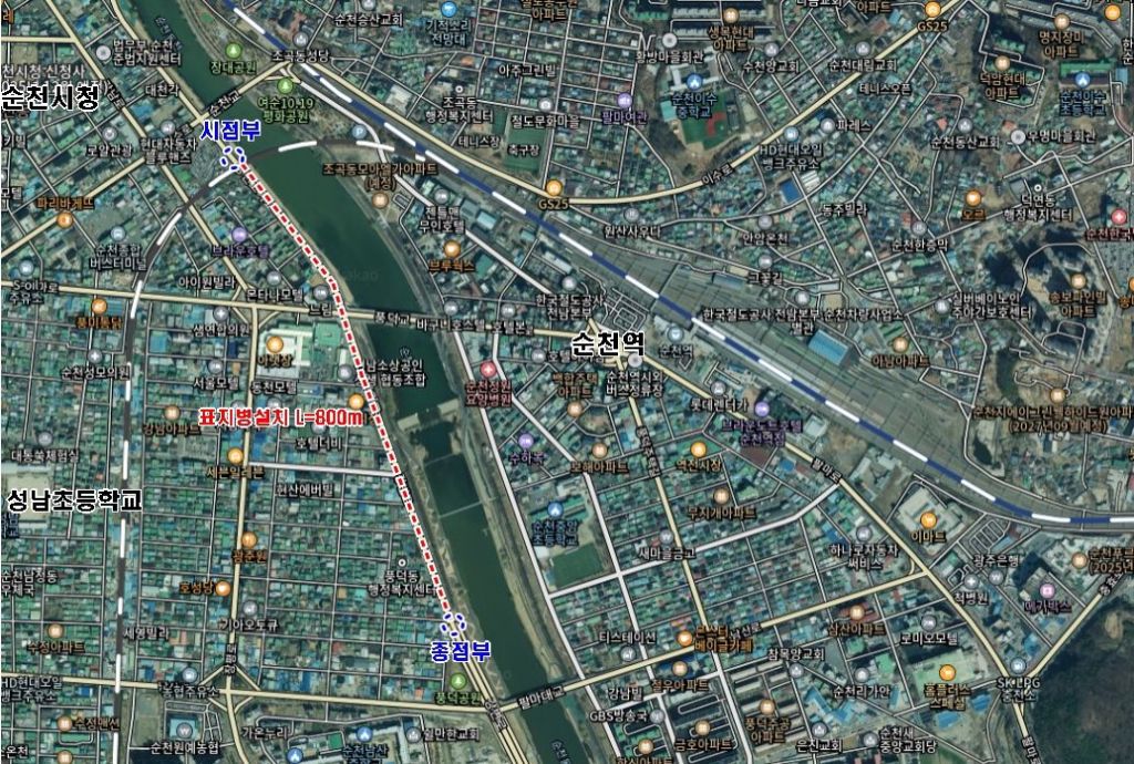 전남 순천시는 강변고가도로에 반사형 표지병을 설치해 차로이탈 사고를 예방하고, 도로 경계의 시인성을 높이겠다고 1일 밝혔다.