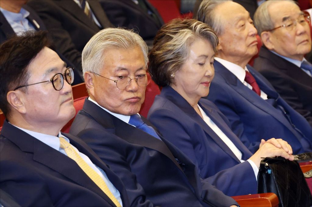 문재인 전 대통령과 김정숙 여사가 지난달 25일 서울 여의도 국회도서관에서 열린 4.27 판문점선언 7주년 기념식에 참석했다. 연합뉴스