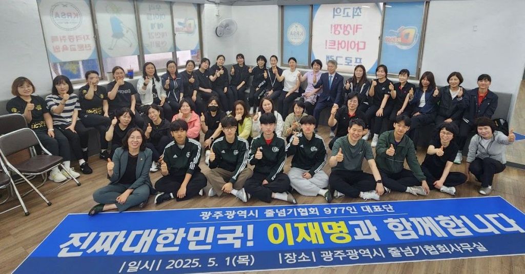 1일 더불어민주당 광주시당에 따르면 '광주 줄넘기협회 대표단 977인'이 이날 줄넘기협회 사무실에서 이재명 후보 지지를 공식 선언하고 나섰다.
