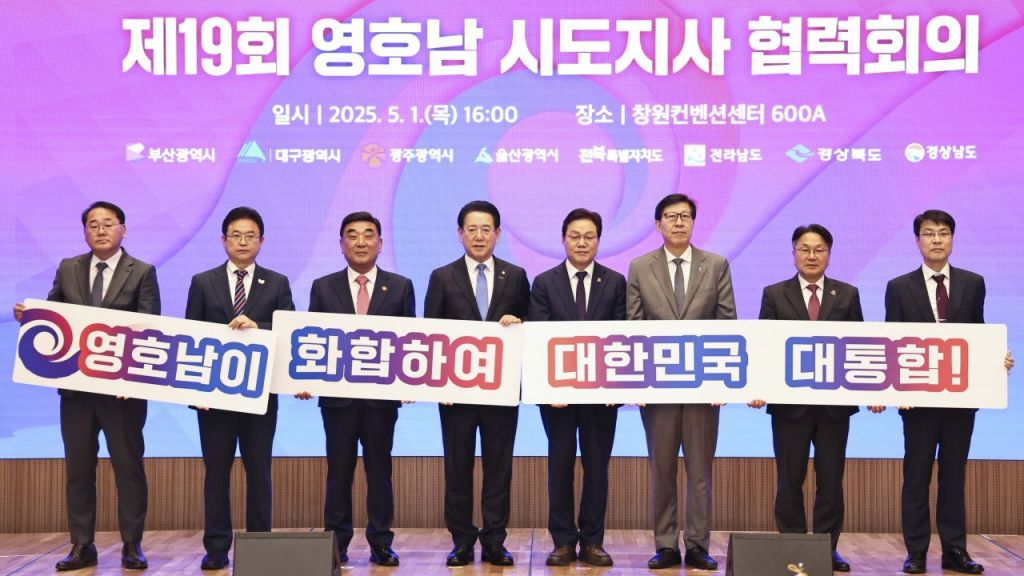협력회의는 ▲영호남 협력회의 성과 및 향후 계획 보고 ▲차기 의장 선임 및 협력·현안 과제, 공동성명 채택 ▲영호남 시도지사 공동성명 발표 및 기자회견 순으로 진행됐다.
