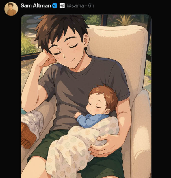 샘 올트먼 오픈AI CEO가 사회관계망서비스(SNS)에 올린 '지브리풍' AI 이미지. 엑스