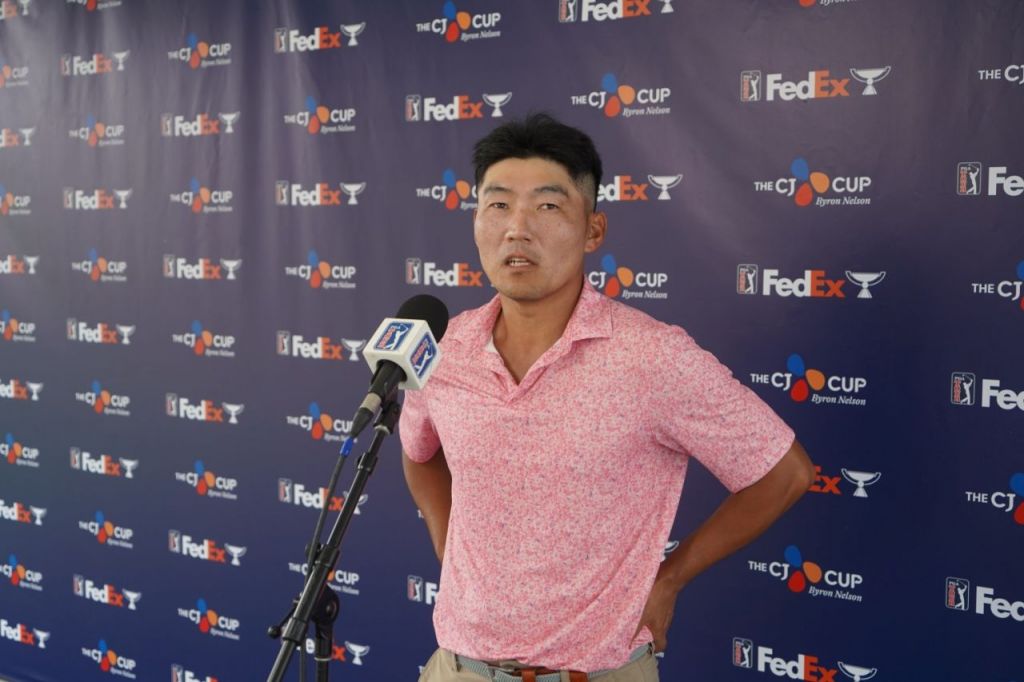 강성훈이 더 CJ컵 바이런 넬슨 1라운드 직후 인터뷰를 하고 있다. CJ그룹
