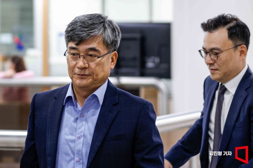 서해 공무원 피격사건 은폐 의혹을 받고 있는 서욱 전 국방부 장관이 2일 서울 서초구 서울중앙지방법원에서 열린 1심 속행공판에 출석하고 있다.
