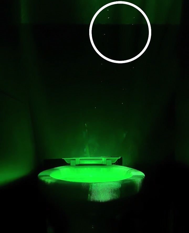 변기 물내림 시 비말 확산 실험 장면. 유한킴벌리 제공