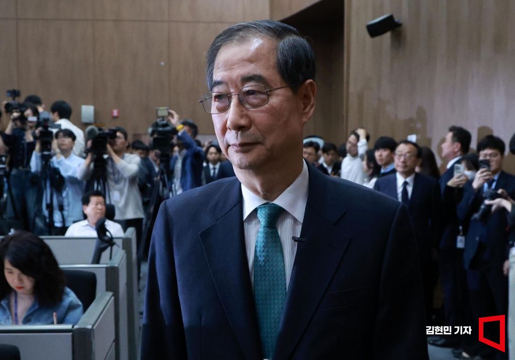 한덕수 전 국무총리가 2일 국회 소통관에서 제21대 대통령 선거 출마 선언을 위해 회견장으로 들어서고 있다.
