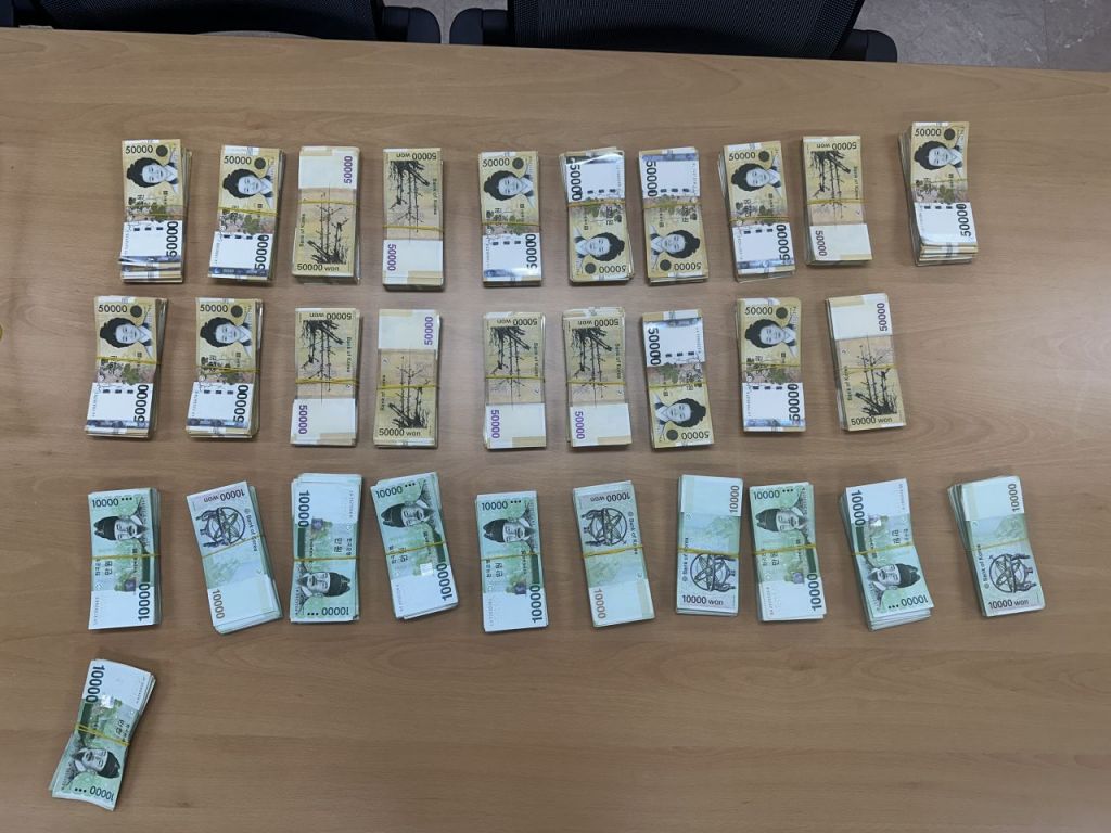 최근 전남경찰이 검거한 보이시피싱 범죄조직으로 부터 압수한 돈뭉치들. 사진은 기사 이해를 돕기 위한 자료사진임. 전남경찰 제공