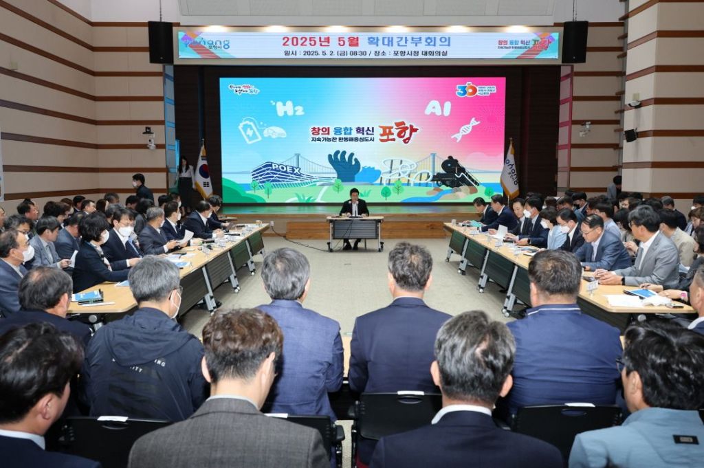 포항시는 2일 열린 5월 확대간부회의에서 복지정책과의 '생애주기별 포항형 지역사회 통합 돌봄' 추진계획과 마이스산업과의 '2025 세계녹색성장포럼' 준비 상황에 대한 테마 보고를 진행하고 주요 현안들을 공유했다.