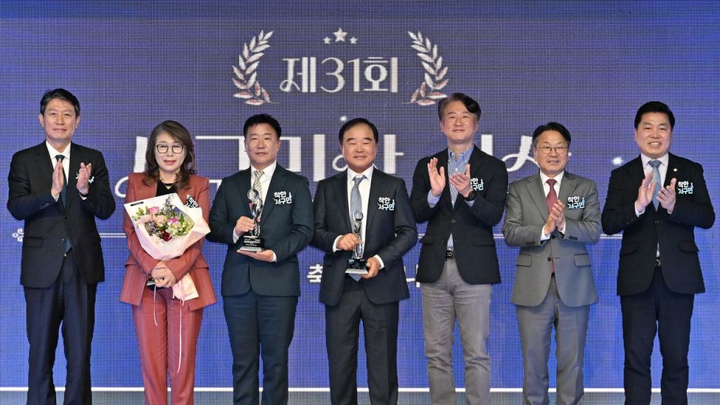 김이강 광주 서구청장이 2일 서구청 들불홀에서 열린 '제31주년 서구민의 날 기념식'에서 강기정 광주시장과 서구민상 수상자, 내빈들과 함께 기념 촬영을 하고 있다. 광주 서구 제공