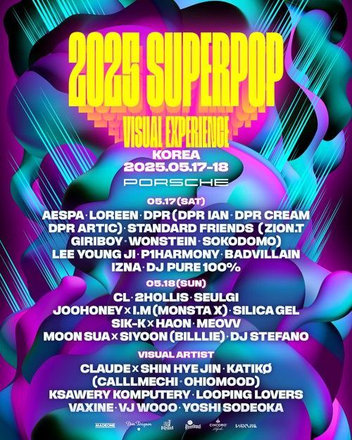'슈퍼팝2025 코리아'는 독창적인 비주얼을 바탕으로 K-POP, 힙합, 얼터너티브, 록 등 다양한 장르의 음악을 자신만의 색으로 재해석하는 아티스트들로 라인업을 완성했다. 글로벌 K-POP그룹 에스파를 비롯해 독창적인 퍼포먼스로 씬을 장악한 씨엘, 디피알, 실리카겔, 이영지, 슬기, 아이엠x주헌, 스탠다드프렌즈, 피원하모니, 배드빌런, 이즈나, 미야오, 문수아x시윤, 식케이x하온 그리고 국내 첫 내한을 앞둔 Loreen과 새로운 시대의아이콘 2hollis까지 장르와 스타일을 넘나드는 최정상 아티스트들이 한자리에 모인다.