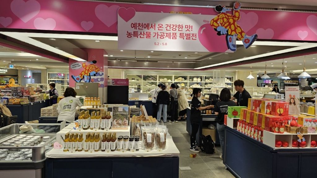 이번 행사는 예천군 관내 농특산물 가공업체 6개 업체가 직접 참여하며, 지역 농산물 기반으로 만든 가공제품 50여 종을 도시 소비자들에게 선보이는 직거래 판촉 행사다.