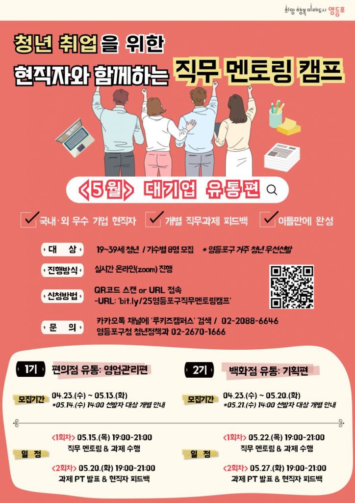 영등포구(구청장 최호권)가 취업 준비 청년들의 직무 이해도와 실무 역량 강화를 돕기 위해 재직자와 함께하는 '직무 멘토링 캠프'를 운영한다고 밝혔다.