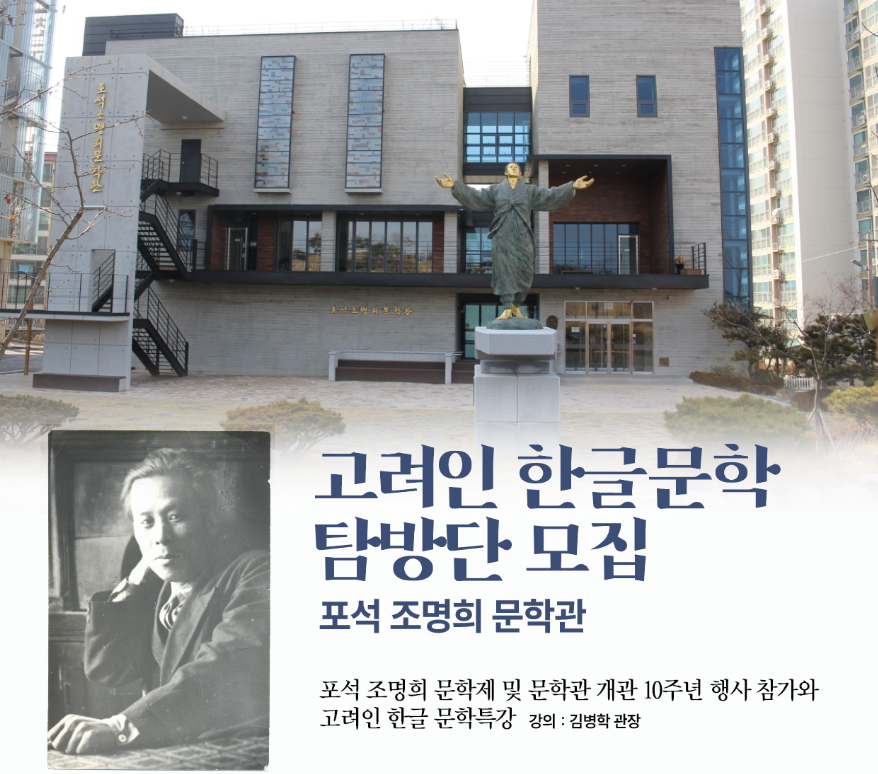 광주 고려인 마을이 오는 10일 충북 진천에서 열리는 '포석 조명희 문학제'에 참가할 고려인 한글문학 탐방단을 모집한다.