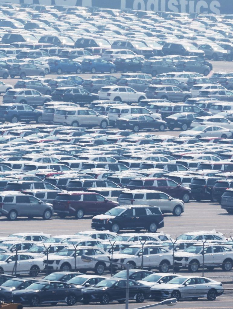 도널드 트럼프 대통령이 미국으로 수입되는 철강·알루미늄 제품에 대한 예외 없는 25% 관세 부과 포고문에 서명한데 이어 자동차와 반도체 등에 대한 관세 부과도 검토중이라고 밝힌 가운데 13일 경기 평택항에 수출용 자동차가 선적 대기하고 있다. 2025.2.13. 강진형 기자