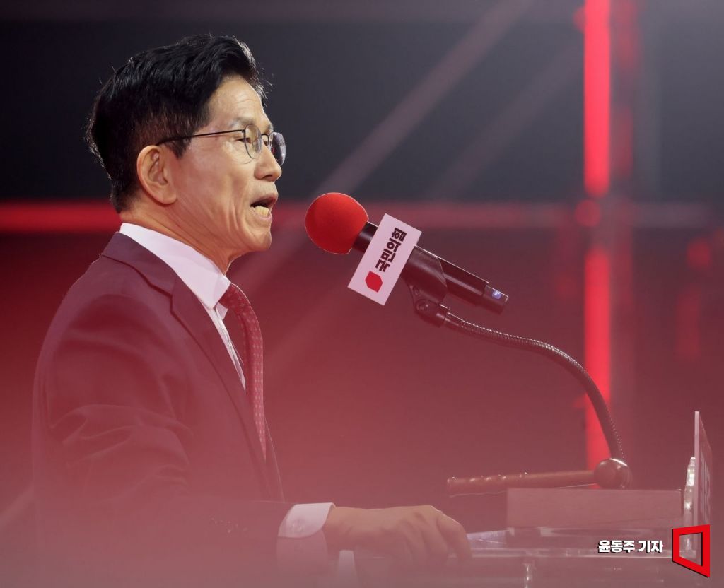 김문수 국민의힘 대통령 후보가 3일 경기 고양시 킨텍스에서 열린 5차 전당대회에서 최종 후보로 확정된 후보 승낙 연설을 하고 있다.