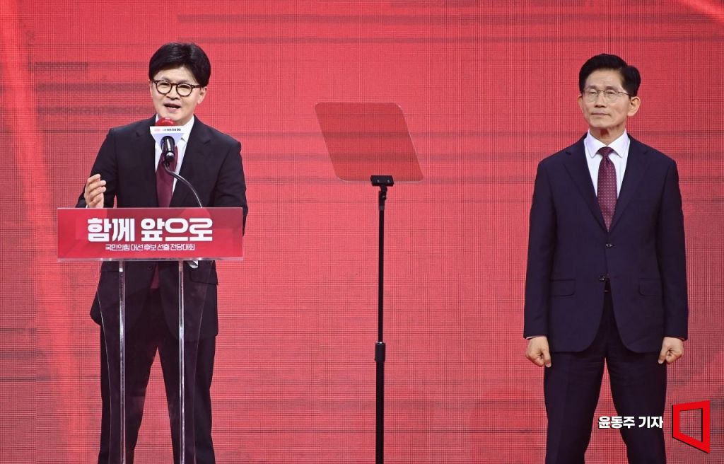 한동훈 국민의힘 대선 경선 후보가 3일 경기 고양시 킨텍스에서 열린 21대 대통령선거 후보자 선출을 위한 제5차 전당대회에서 결과 승복 연설을 하고 있다.