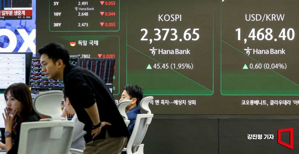 코스피 지수가 전날의 급락을 딛고 장 초반 2%에 가까운 반등세를 보인 8일 서울 중구 하나은행 딜링룸에서 딜러들이 업무를 보고 있다. 2025.4.8. 강진형 기자