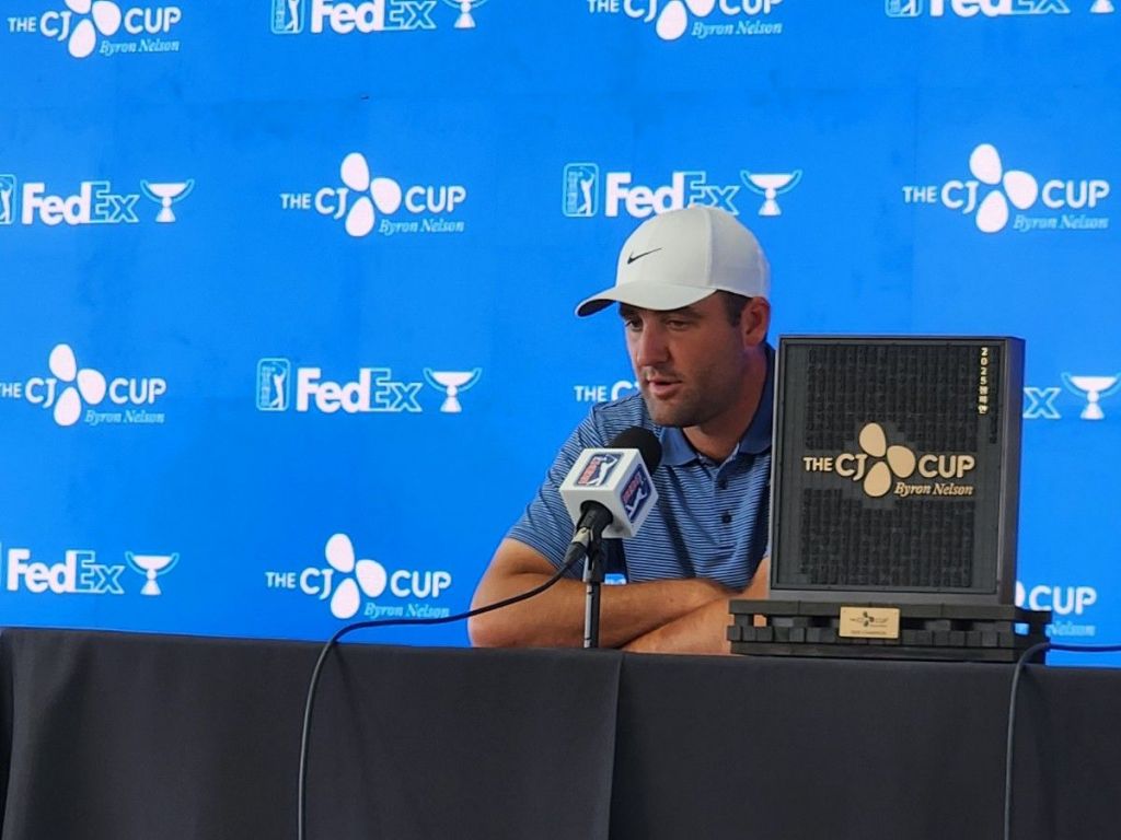 스코티 셰플러가 더 CJ컵 바이런 넬슨 우승 직후 인터뷰를 하고 있다. 매키니(미국)=노우래 기자
