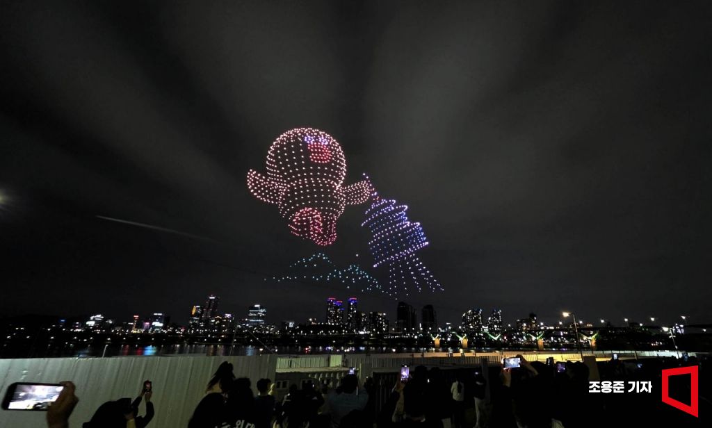 어린이날인 5일 서울 뚝섬한강공원에선 한강드론라이트쇼가 열린 가운데 1천여대의 드론이 연출한 다양한 캐릭터들이 밤하늘을 수놓고 있다. 다음 뚝섬 드론쇼는 5월 11일 밤 8시30분에 열린다.