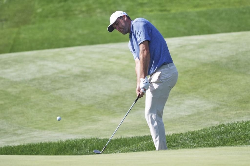스코티 셰플러가 더 CJ컵 바이런 넬슨 4라운드 17번 홀에서 웨지 샷을 하고 있다. 매키니(미국)=AP연합뉴스