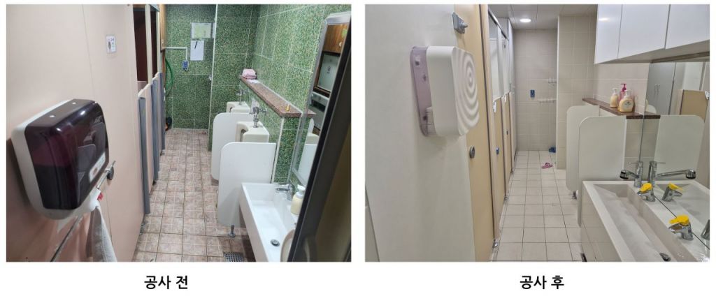 어린이집 화장실 공사 전후 비교. 강남구 제공.