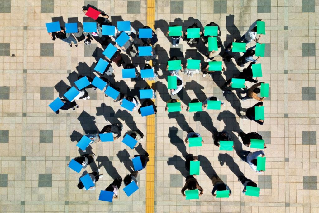 청렴 카드섹션 퍼포먼스는 드론 촬영을 통해 '정렴'에서 '청렴'으로 변화하는 과정을 시각적으로 보여주는 독특한 형식으로 진행됐다.