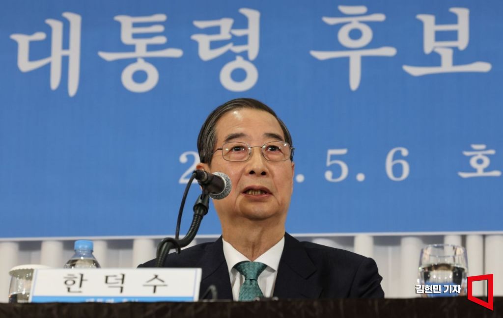 한덕수 무소속 대통령선거 예비후보가 6일 서울 중구 코리아나호텔에서 열린 관훈클럽 초청 토론회에서 기조연설을 하고 있다. 2025.5.6 국회사진기자단