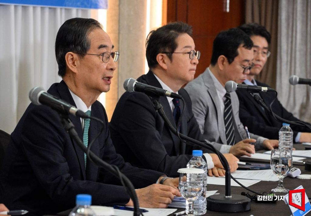한덕수 무소속 대통령선거 예비후보가 6일 서울 중구 코리아나호텔에서 열린 관훈클럽 초청 토론회에서 기조연설을 하고 있다. 2025.5.6 국회사진기자단