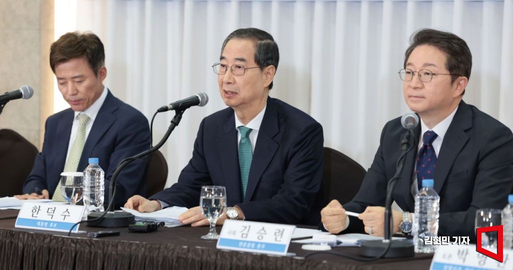한덕수 무소속 대통령선거 예비후보가 6일 서울 중구 코리아나호텔에서 열린 관훈클럽 초청 토론회에서 기조연설을 하고 있다. 2025.5.6 국회사진기자단