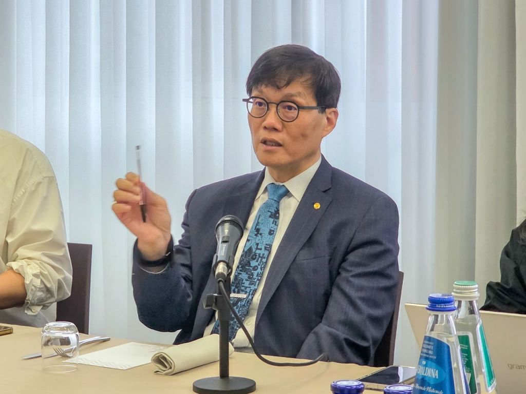 이창용 한국은행 총재가 5일(현지시간) 아시아개발은행(ADB) 연차 총회 참석차 방문한 이탈리아 밀라노에서 국내 기자단과 만나 발언하고 있다. 한국은행